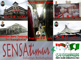 Kalau PAS dakwa UMNO gemar mengamalkan kroni pula, bagaimana keadaannya dengan semua projek-projek MEGA di seluruh Kelantan yang dimonopoli oleh syarikat proksi menantu MB? Lebih menyedihkan, sudahlah menelan kos sehingga ratusan jutaan ringgit, apabila siap, ia hanya menjadi projek Gajah Putih kerana rakyat tempatan tidak mampu menyewa atau membelinya!